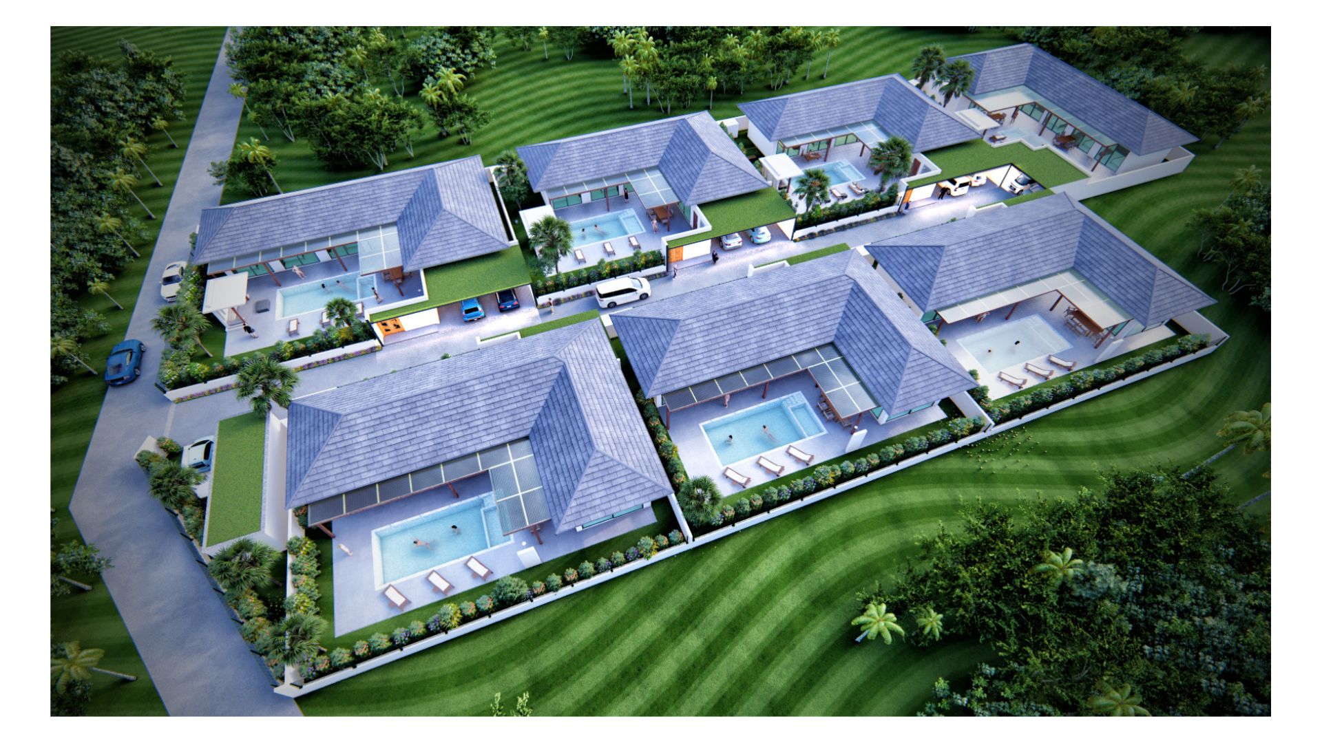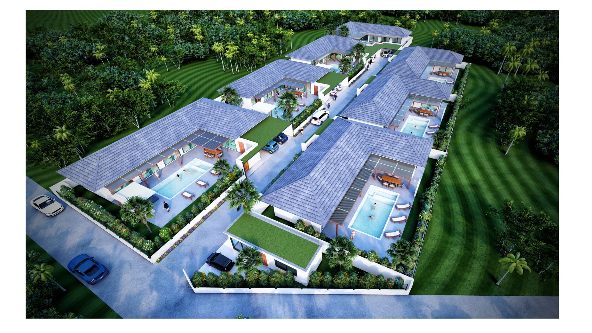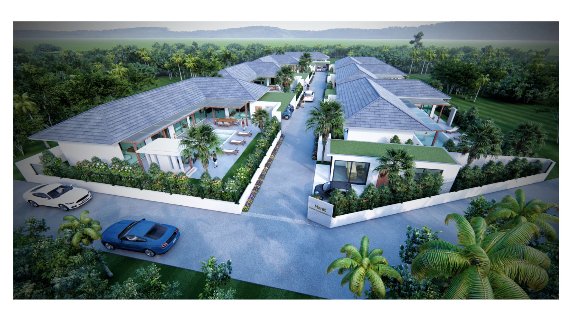 The project is located in Lamai (Koh Samui) with a ground lease of 30 years for the land. The project will be built up with 7 villas in spring 2023. Only a few minutes walk from the town centre with a variety of shops. Lamai Beach is only a few minutes away.